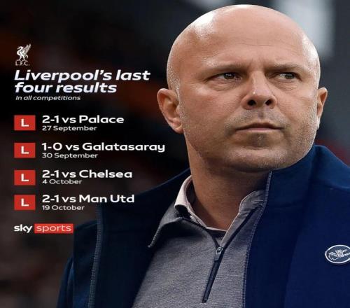 利物浦主场1-2不敌曼联,遭遇各项赛事4连败!