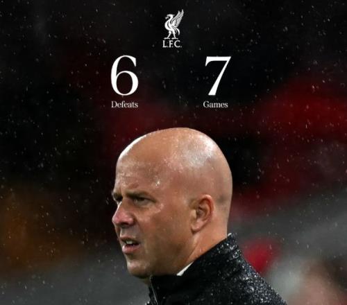 统计数据表明,自9月27日以来,利物浦在欧洲五大联赛各项赛事中输掉的比赛场次(6场)比任何其他球队都多。