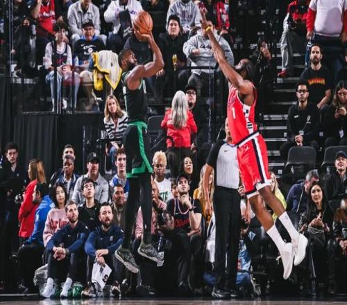 他在末节3分44秒就被换下,否则打破生涯得分纪录轻而易举。当然我有种预感,50分可能还不是他这赛季的最高分,杰伦-布朗最近的状态太火热了。