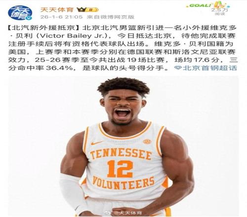 据北京媒体报道,北京首钢俱乐部一夜签下两名外援,小维克多-贝利以及贾维尔-麦基。贝利已经抵达北京,麦基预计在春节后与北京男篮汇合。