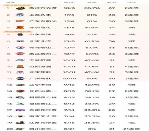 CBA最新积分榜